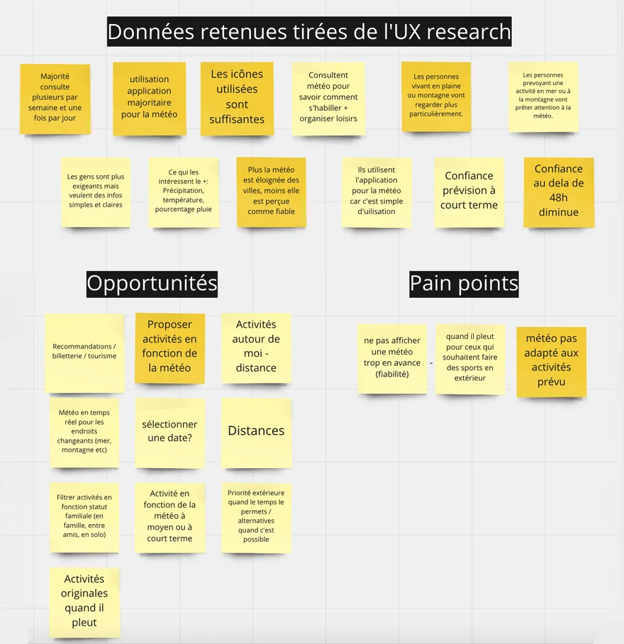 Suite à l’analyse des entretiens utilisateurs, nous avons trié et défini l’orientation de notre application.