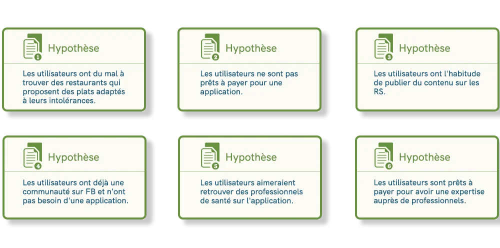 Avec toutes ces informations, nous pouvions alors émettre des hypothèses et créer notre questionnaire et nos entretiens afin d’avoir plus d’informations côté utilisateur.