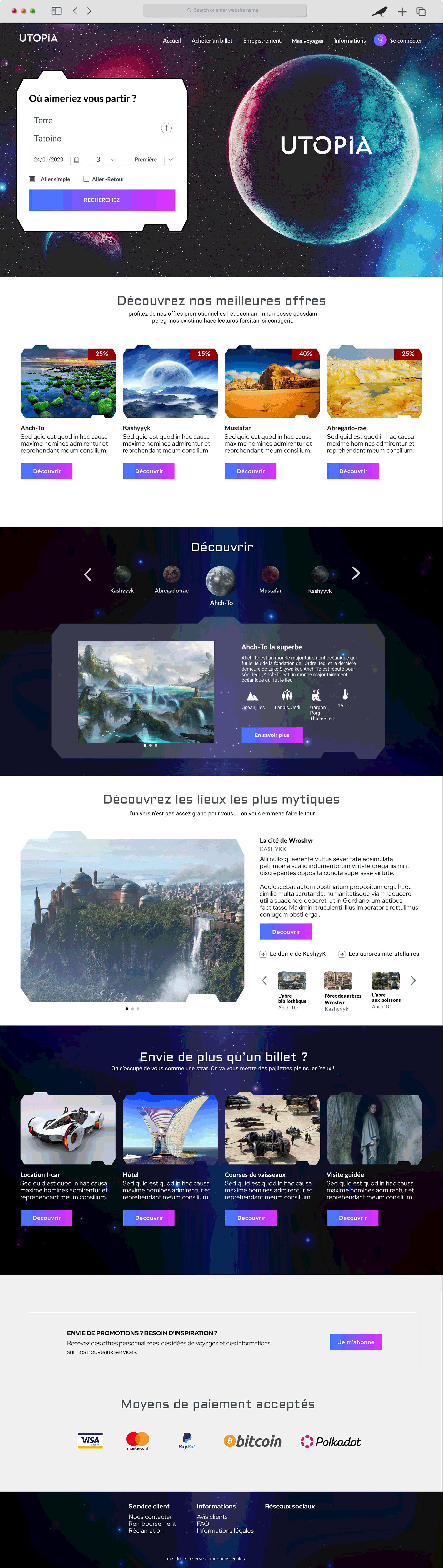Ils nous a fallu travailler sur un site de reservations en lignes pour des vols sur d’autres planètes. Nous avons travaillé sur la version desktop.